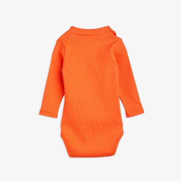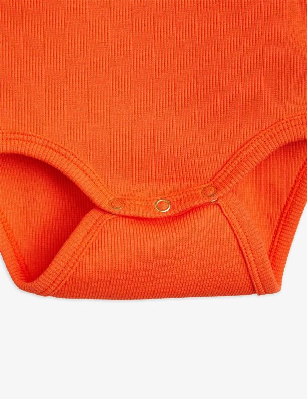 Red ribbed long sleeve bodysuit with a Skipper print, made from GOTS certified organic cotton with stretch. The bodysuit is designed with a high neck and features snap buttons at the crotch for easy dressing.