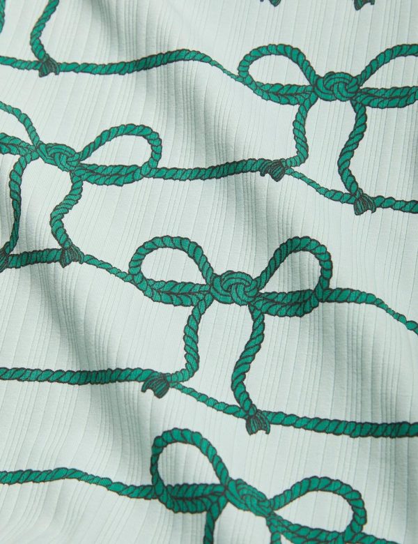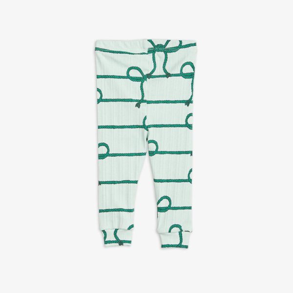 Green ribbed baby leggings with an all over Rope print, made from GOTS certified organic cotton with a hint of stretch. The leggings are designed with a soft elastic waist and cuffs at leg ends.