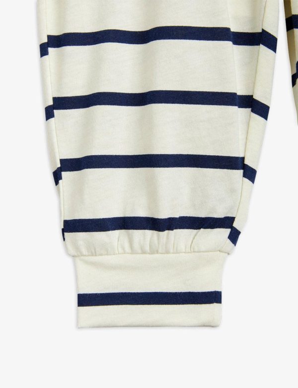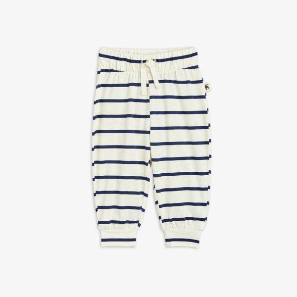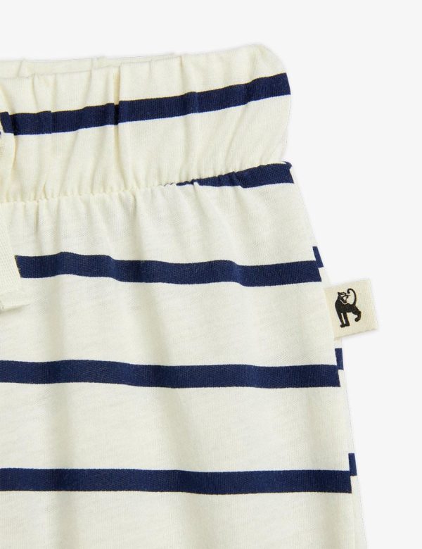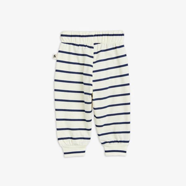 Baby trousers with all over Ferry Stripe print made from 100 % GOTS certified organic cotton. Designed with a folded Mini Rodini Panther label, cuffs and an elastic drawstring waist.