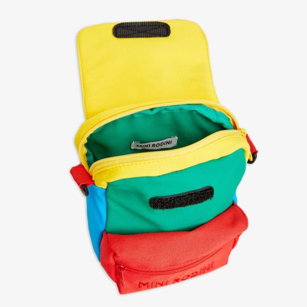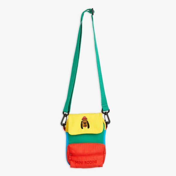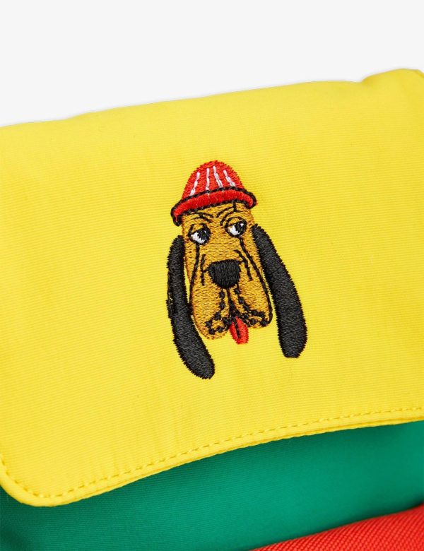 Shoulder bag made from 100 % recycled nylon. Featuring a removable adjustable shoulder strap, a front zipper compartment and a main compartment with a velcro fastened cover. Decorated with a Mini Rodini logo and a Bloodhound motif.