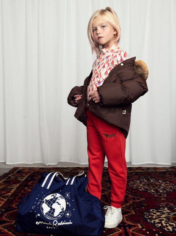 Packable bag in 100 % recycled polyamide. Designed with a large Mini Rodini Society print, the whole bag can be packed into the inner pocket to conserve space.