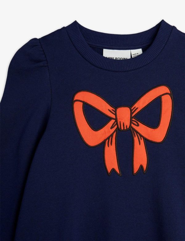 Sweatdress made from 100 % GOTS certified organic cotton. Designed with puffed shoulders. Decorated with Bow appliqué Finished with folded M label on the side.