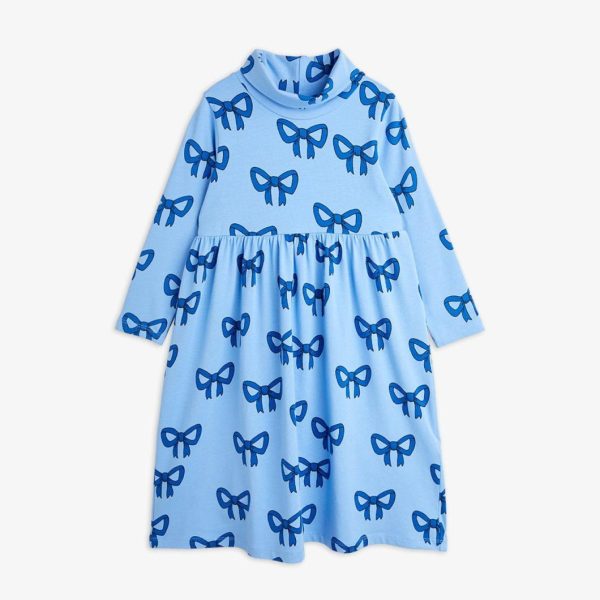 Long sleeve dress with an all over Bow print, made from GOTS certified organic cotton with a hint of stretch. Designed with a high rolled neck and a flowy skirt.