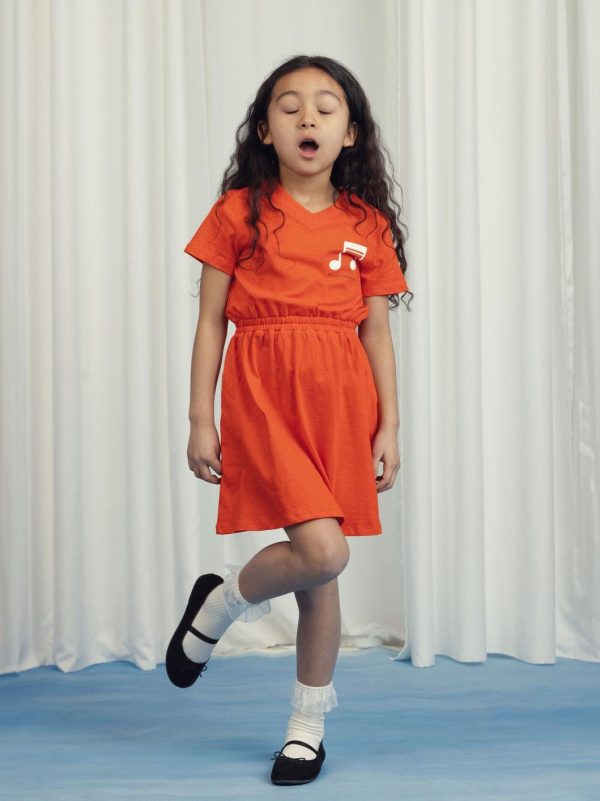Short sleeved dress with Note patch, made from 100% GOTS certified organic cotton. Designed with a ribbed V-neck and elastic waist.Features