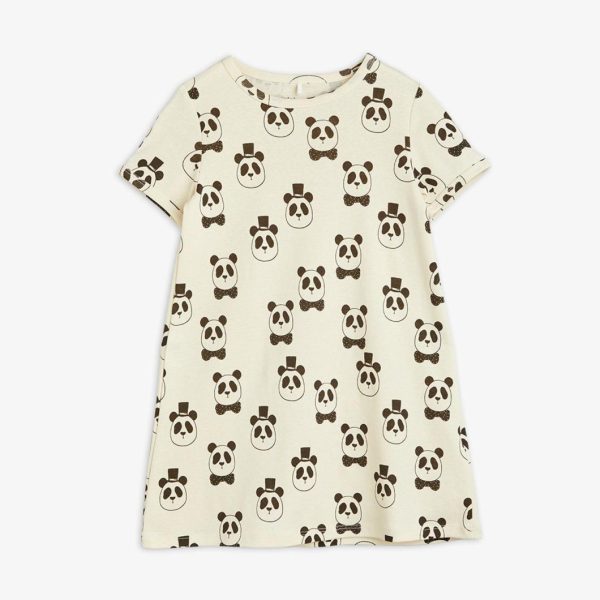 Off white dress with all over Panda print, made from 100 % GOTS certified organic cotton. The dress has snap buttons at the shoulder in the smallest sizes (56/62–68/74) for easy dressing.