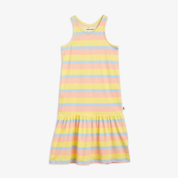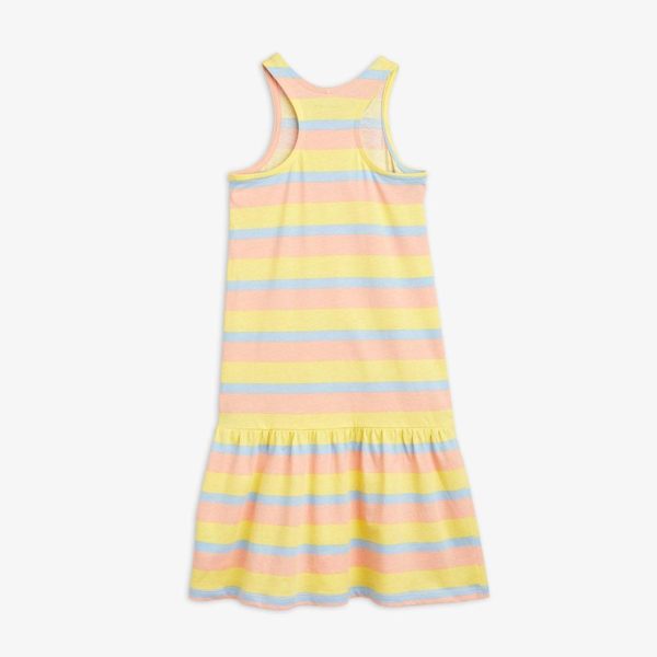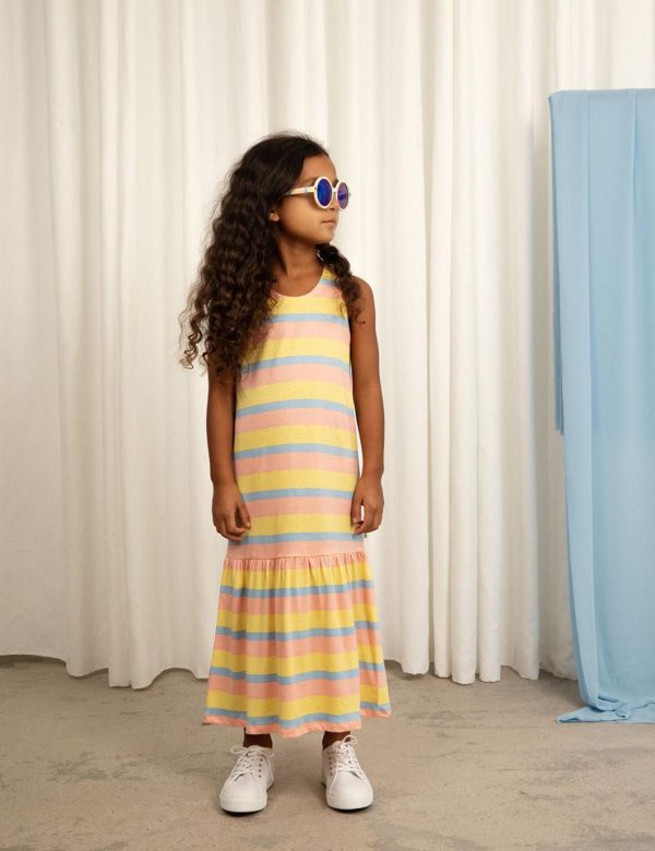 Long tank dress with an all over Pastel Stripe print, made from 100 % GOTS certified organic cotton. Deisgned with an extended skirt and a folded Mini Rodini Panda label.
