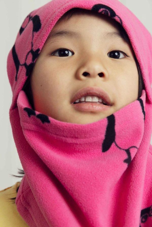 Penguin printed fleece balaclava made from 100 % recycled polyester. Decorated with a Mini Rodini Panther label.