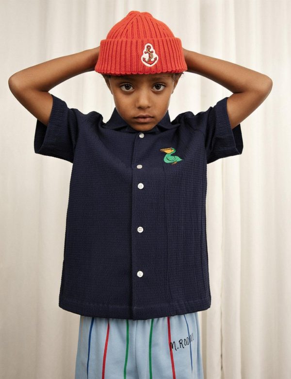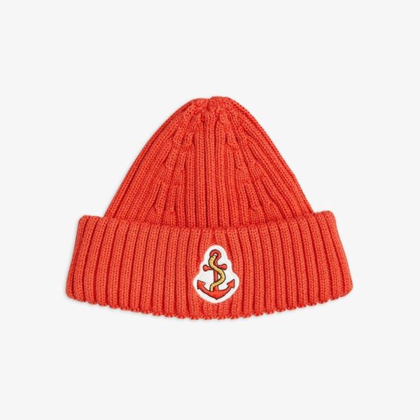 Knitted beanie in 100 % GOTS certified organic cotton featuring an embroidered Anchor artwork and a folded brim. Designed for a higher fit, ending above the ears.