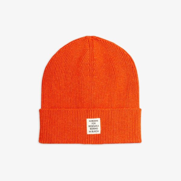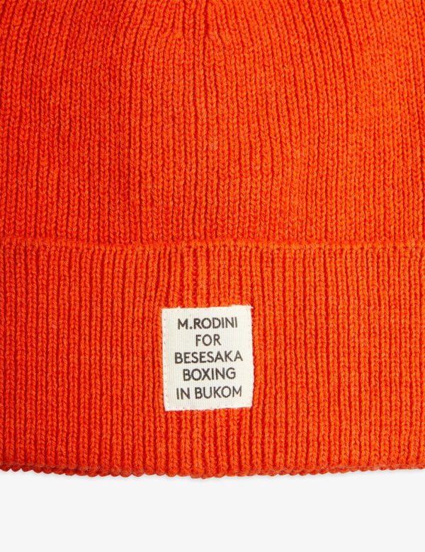 Knit beanie for adults and older kids in a GOTS certified organic cotton and wool blend. Designed with a folded brim and finished with a Mini Rodini for Besesaka collab patch.