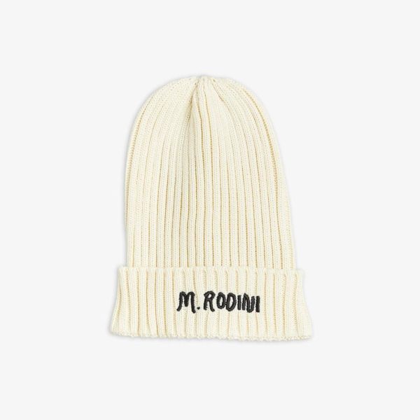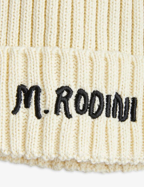 Knitted beanie in 100 % organic cotton featuring a “M.Rodini” embroidered logo and a folded brim. Sizes 44/46 and 48/50 come with a chin strap to keep the hat on securely.