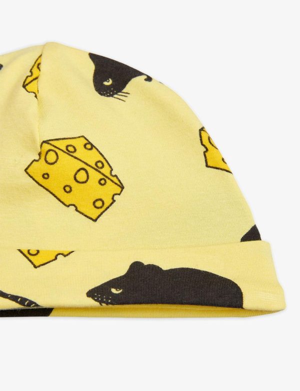 Baby beanie with all over Mouse print made from GOTS certified organic cotton with stretch. Designed with a folded hem.