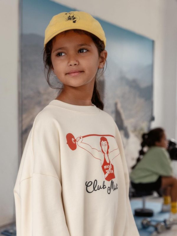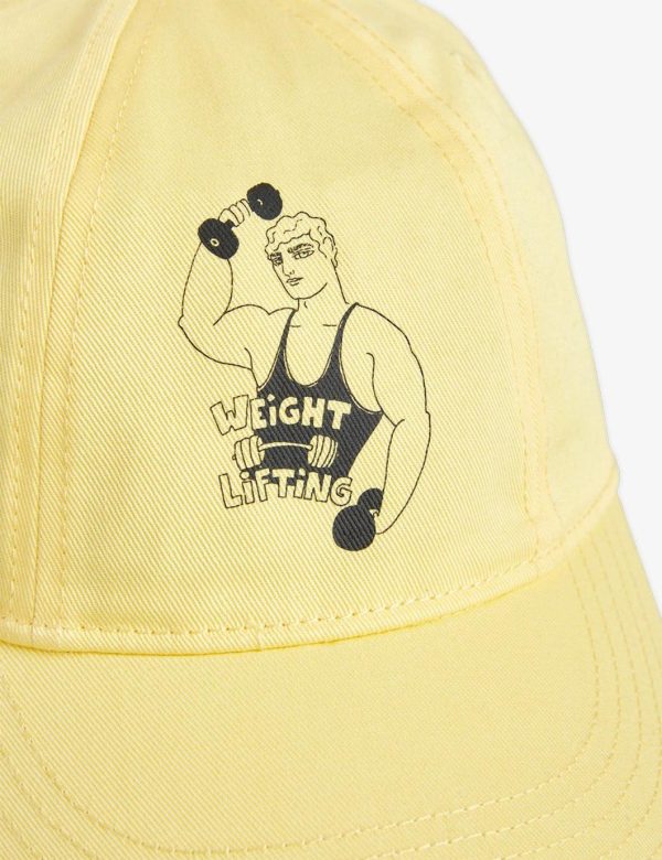 Baseball cap decorated with a Weight Lifting print, made from 100 % organic cotton. The cap features an embroidered M.Rodini logo on the back and is adjustable with a metal buckle for the perfect fit.