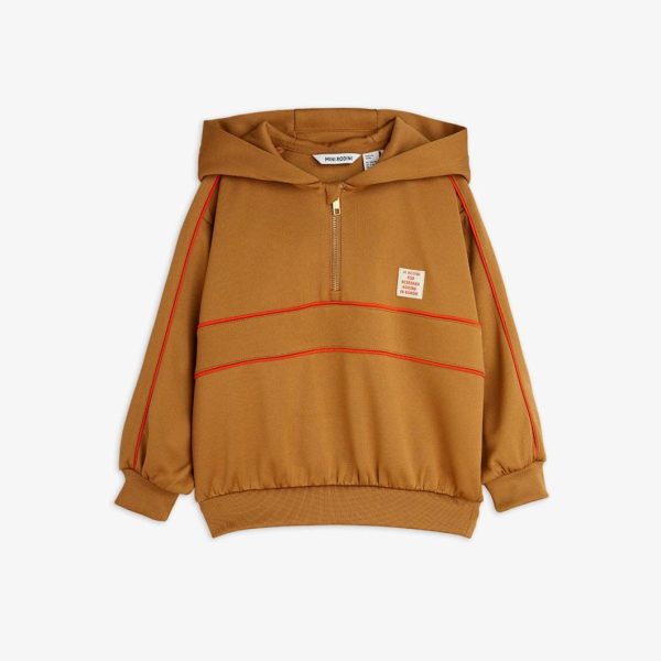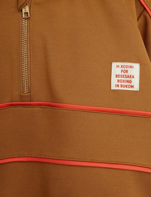 Half zip hoodie in 100 % recycled polyester WCT. Designed with contrasting piping, metal zipper and ribbed trims. Finished with a sewn on M.Rodini for Besesaka collaboration patch.