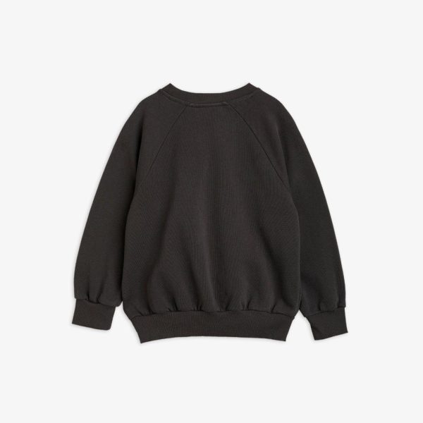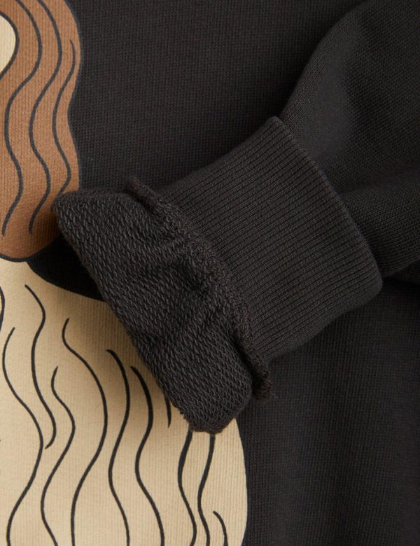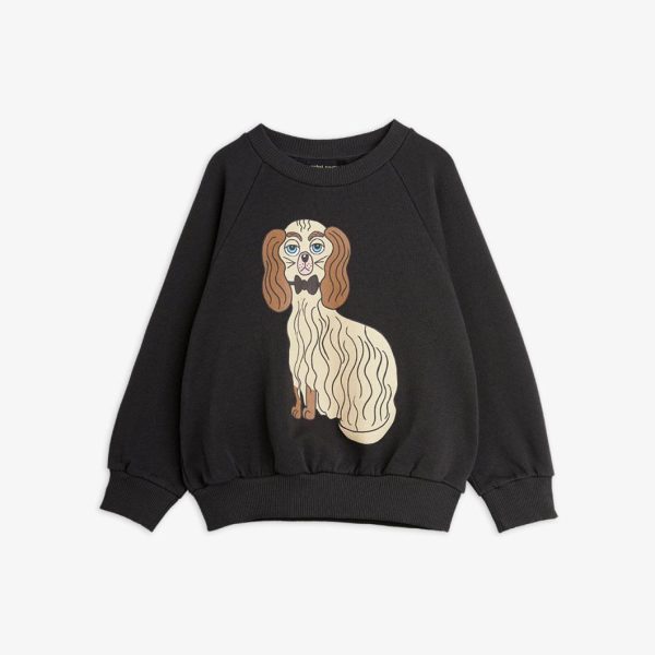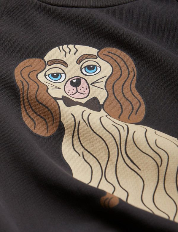 Black sweatshirt featuring a large Dashing Dog print in the front, made from 100 % GOTS certified organic cotton. The sweatshirt is designed with raglan sleeves, rib at the neck, sleeve ends and bottom hem.