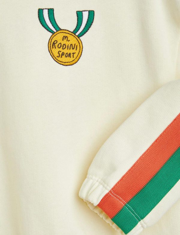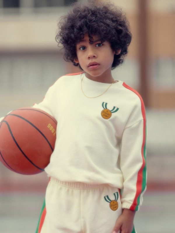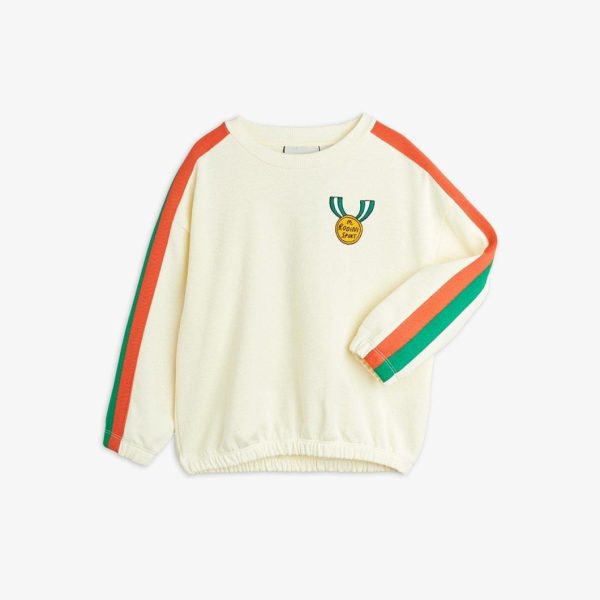 Embroidered sweatshirt made from 100 % GOTS certified organic cotton. Designed for a relaxed fit with dropped shoulders, finished with ribbed elastic trims and stripe detailing along the sleeves.