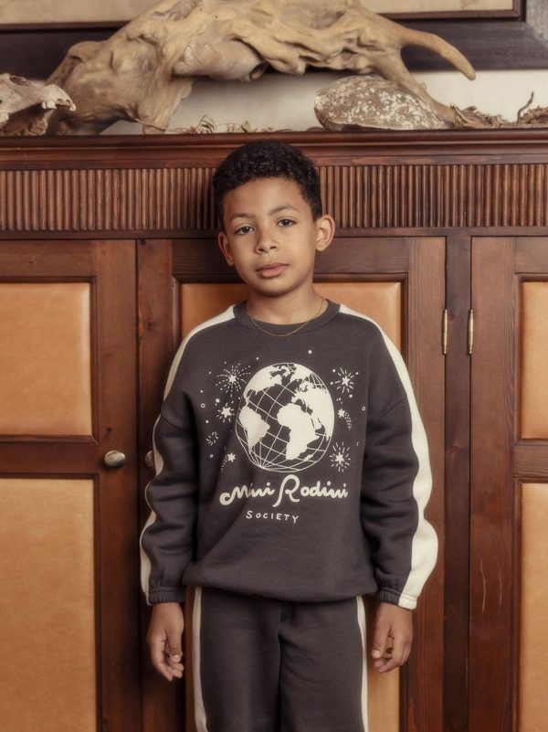 Sweatshirt with a Mini Rodini Society print, made from 100 % GOTS certified organic cotton. Designed for a relaxed fit with dropped shoulders, finished with ribbed elastic trims and panel detailing along the sleeves.