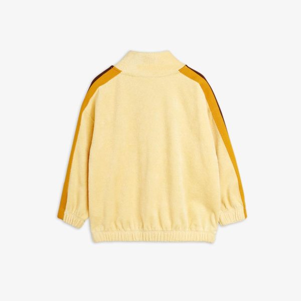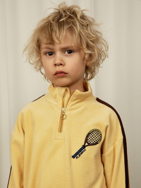 Half zip sweatshirt in Terry fabric, made from 100 % GOTS certified organic cotton. Designed with a high neck and dropped shoulders. Finished with a Tennis embroidery on the chest and stripe detailing along the sleeves.