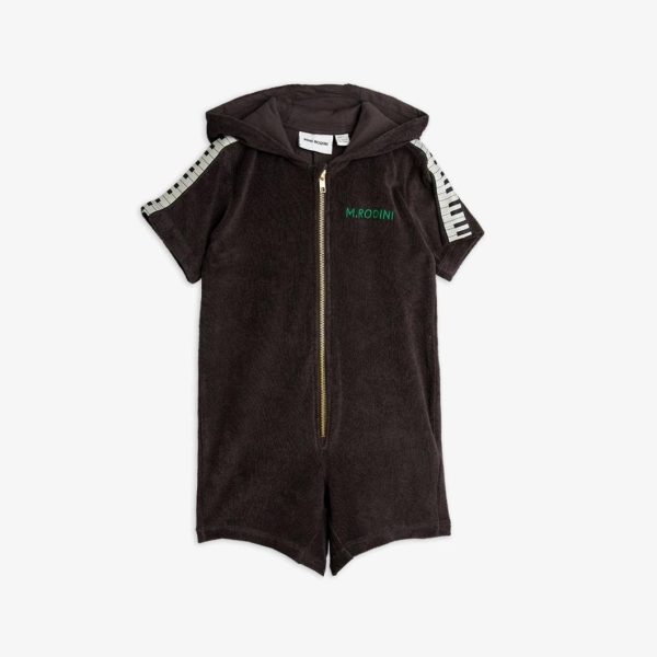 Hooded summersuit in terry, made from 100 % GOTS certified organic cotton. Designed with side panels along the arms legs and zip closure for easy dressing.Features