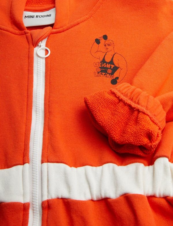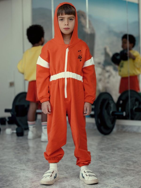 Jumpsuit made from 100 % GOTS certified organic cotton. Designed with elastic waist and trims along with a cut and sew detail at the shoulders. Finished with a Weight Lifting print on the chest.