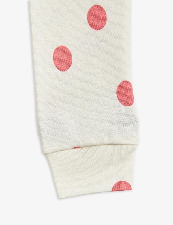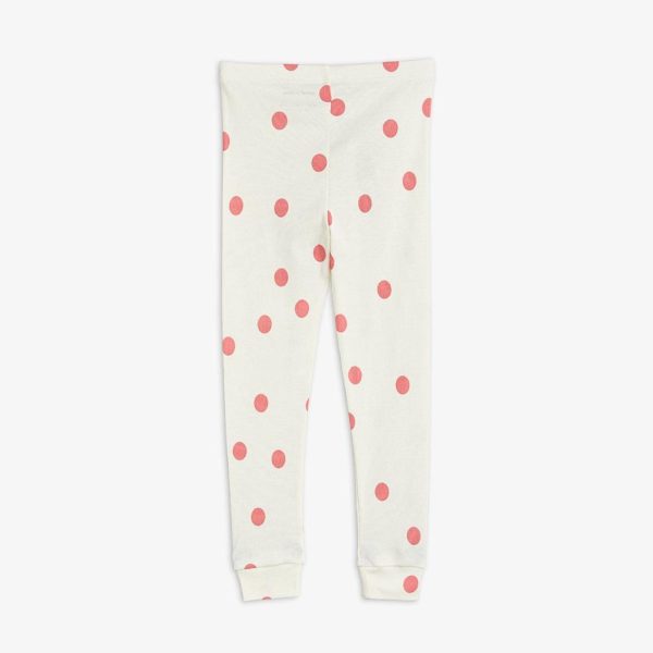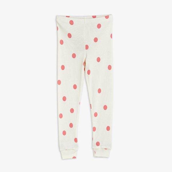 White dotted leggings with a Dashing Dogs print, made from 100 % GOTS certified organic cotton. Designed with a soft elastic waist and cuffs.