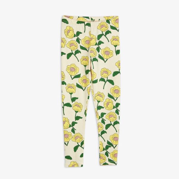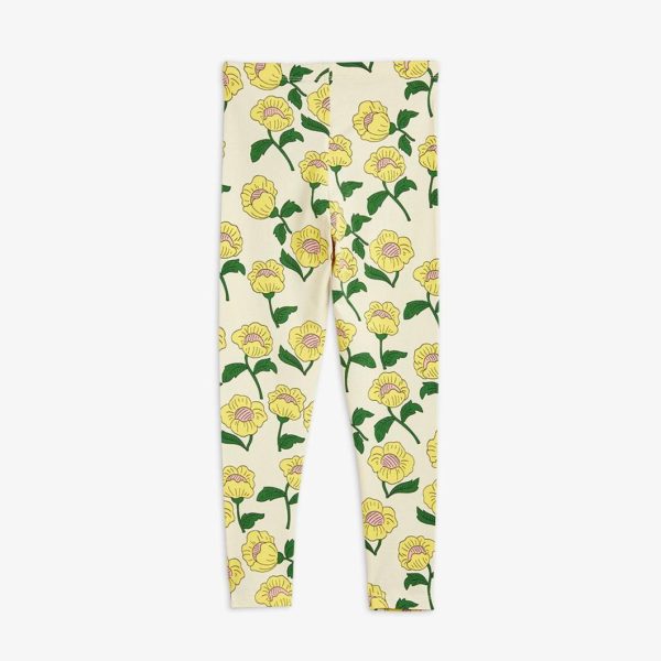 Yellow leggings with an all over Flowers print, made from GOTS certified organic cotton with a hint of stretch. Designed with a soft elastic waist.