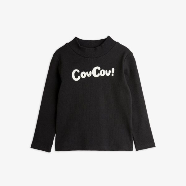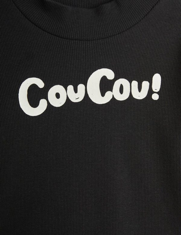 Long sleeve ribbed T-shirt with a CouCou print, made from GOTS certified organic cotton with stretch. Designed with a high neck. The fabric is slightly heavier, weighing 275 g/m².