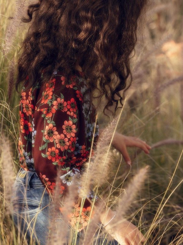 Relaxed fit long sleeve T-shirt with an all over Daisys print, made from TENCEL™ Lyocell with a hint of stretch. Designed with dropped shoulders and binding at neck.