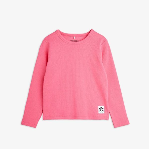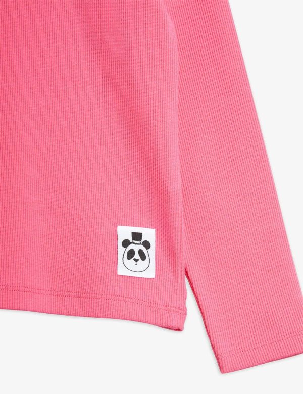 Long sleeve ribbed T-shirt with a Mini Rodini Panda label, made from 100 % GOTS certified organic cotton. Designed with binding at neck. Sizes 56/62–68/74 feature snap buttons on the shoulder for easy dressing.