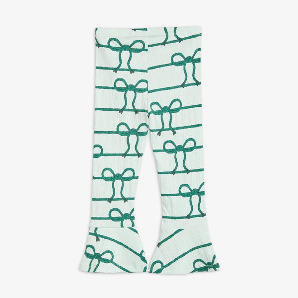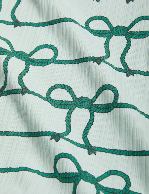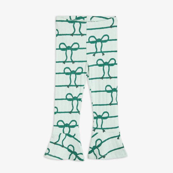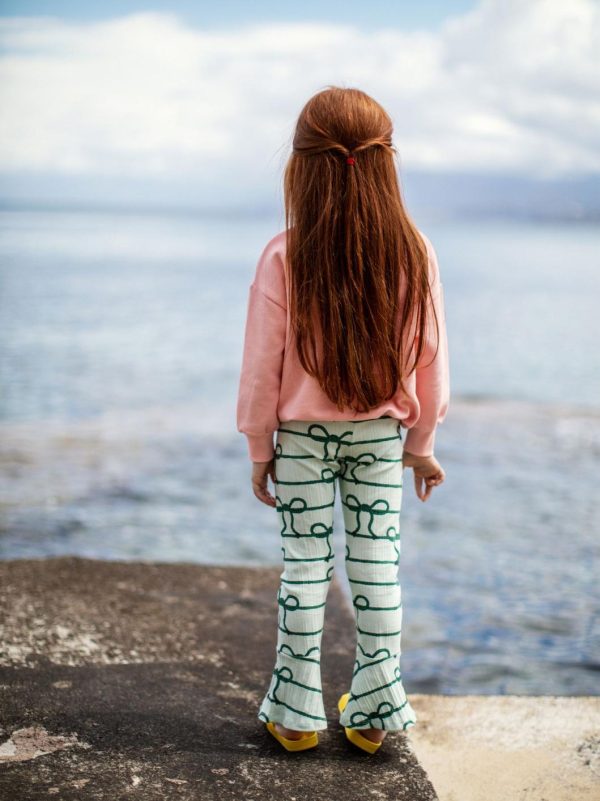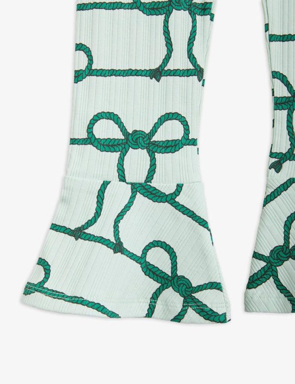 Green ribbed trousers with an all over Rope print, made from GOTS certified organic cotton with a hint of stretch. Designed with a soft elastic waistband and flared leg ends.