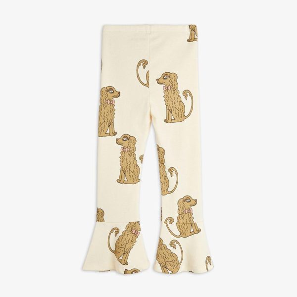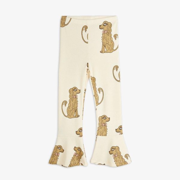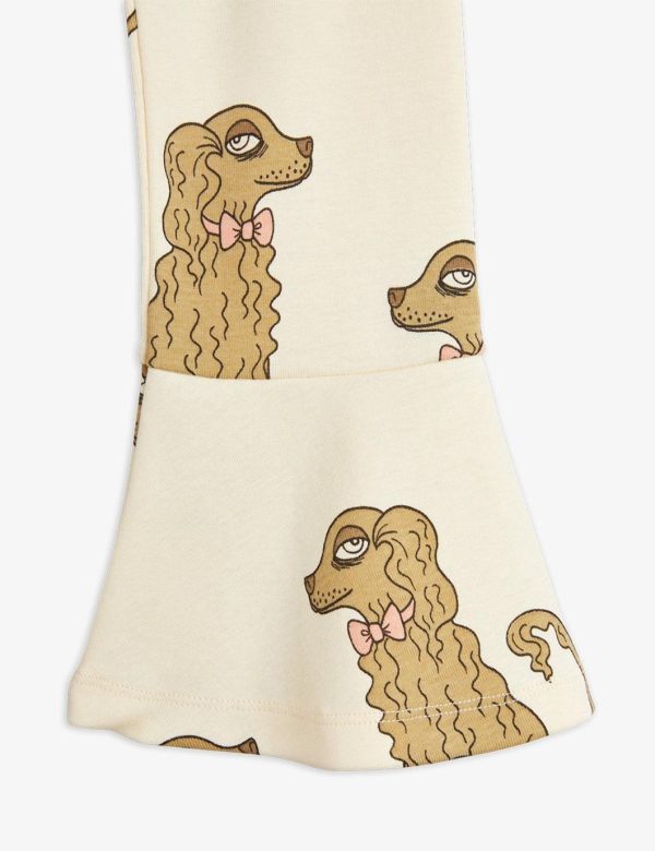 Upcycled trousers with an all over Spaniel print, made from GOTS certified organic cotton. Designed with a soft elastic waistband and flared leg ends.Features