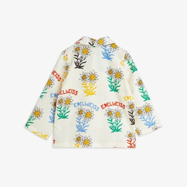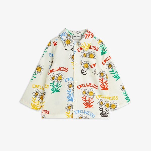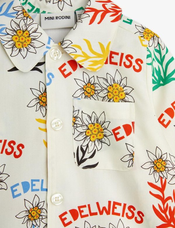 Upcycled long sleeve button up shirt with an all over Edelweiss print, made from 100 % woven TENCEL™ Lyocell. Designed with large buttons, a pointed collar and a chest pocket.
