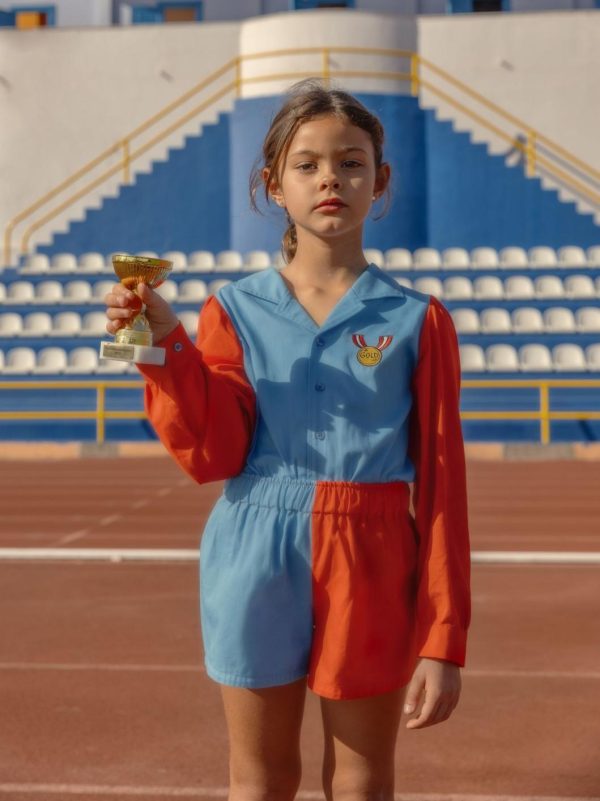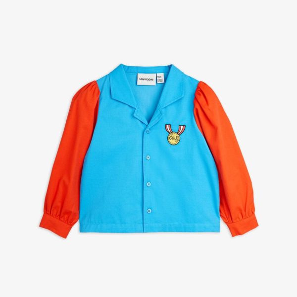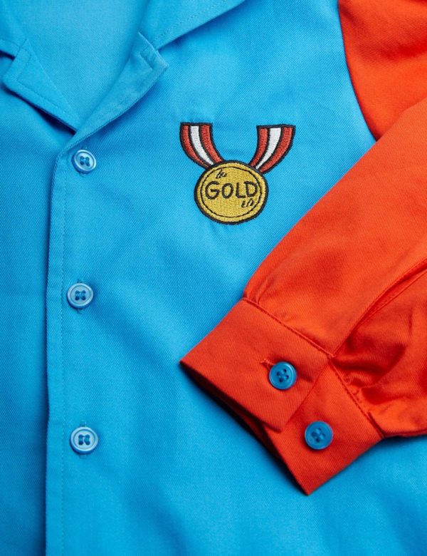 Blouse made from 100 % GOTS certified woven organic cotton. Designed with puffed sleeves, cuban collar and bottun closure in the front. Decorated with a Medal embroidery.