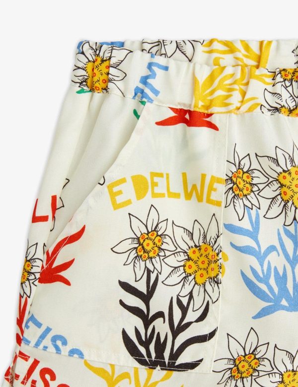 Upcycled shorts with an all over Edelweiss print, made from 100 % woven TENCEL™ Lyocell. Designed with two sewn on front pockets and an elastic waistband.