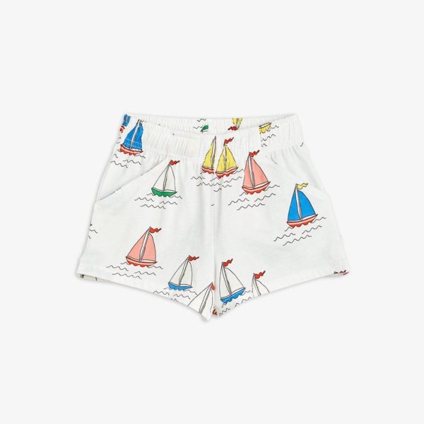 White shorts with an all over Sailing Boats print made from 100 % GOTS certified organic cotton. The shorts feature a soft elastic waist and two front pockets.