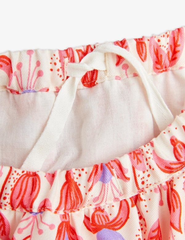 Woven balloon skirt with an all over Fuchsia print, made from 100 % TENCEL™ Lyocell. The skirt is lined and has an elastic waistband.