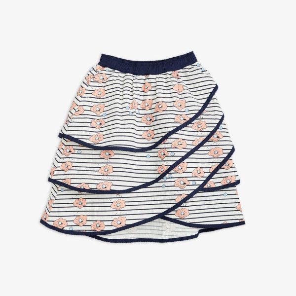 White and blue seersucker skirt with an all over Seashell print, made from 100 % GOTS certified organic cotton. Designed with a frilly, layered construction. Featuring a light cotton lining and elastic waist.