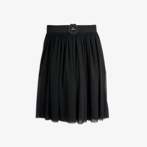 Tulle skirt with a M.Rodini flower on the waistband, made from recycled polyester and organic cotton. The skirt is lined, and the waistband is elastic.
