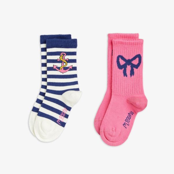 Two pack socks made from a GOTS certified organic cotton and polyamide mix with stretch. The socks are soft to the touch, comfortably stretchy and have reinforced toe caps and heels. M.Rodini is printed under each foot.