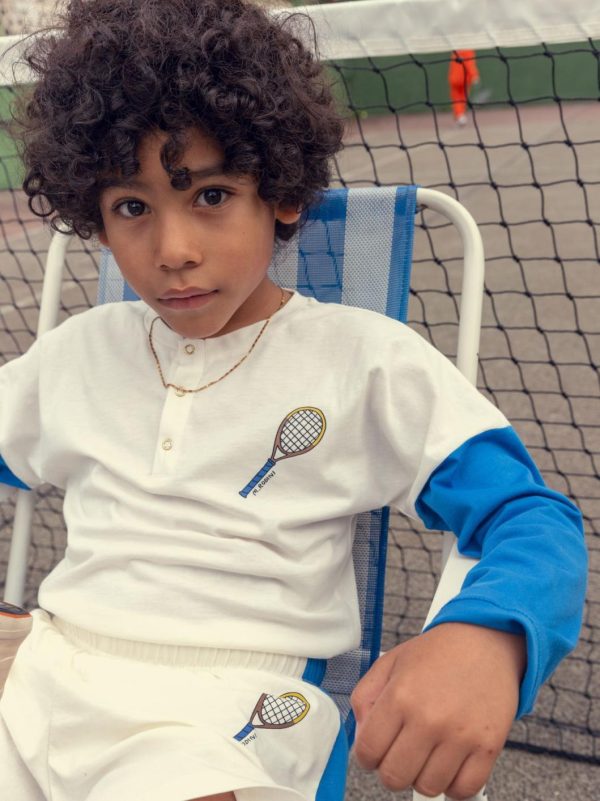 Long sleeve grandpa shirt made from 100 % GOTS certified organic cotton. Designed with dropped shoulders, contrasting sleeves and snap button closure in the front.