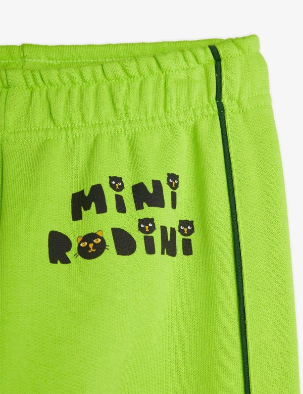 Sweatpants designed for a relaxed fit with elastic trims and contrast piping along the legs. Decorated with cats Mini Rodini print in front. The model is 118 cm tall and is wearing a size 116/122.