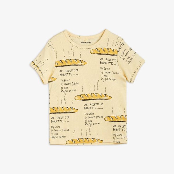 Yellow semi tight fit T-shirt in 100 % GOTS certified cotton with an all over Baguette print. Featuring bindings at neck and sleeves.