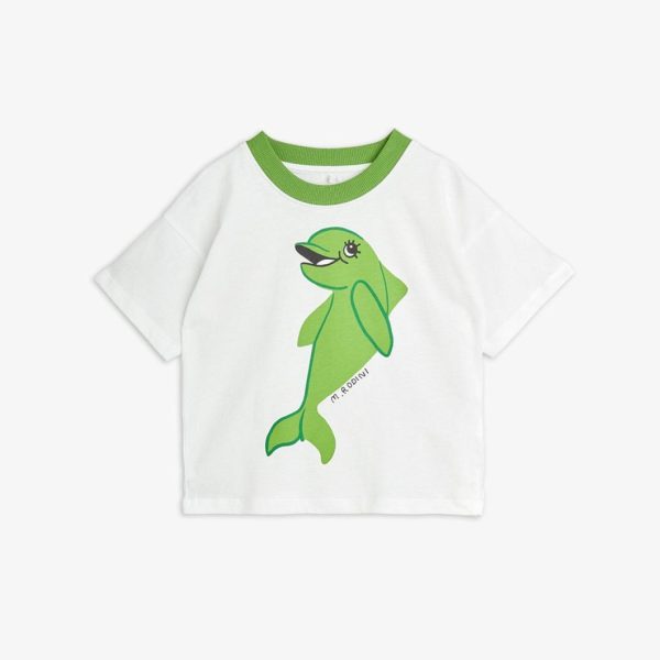 T-shirt with a Dolphin print, made in 100 % GOTS certified organic cotton. Cut for a loose fit and designed with a contrasting ribbed collar.u003c/pu003enu003cpu003eModel is 114 cm/3’7″ and is wearing a size 104/110.