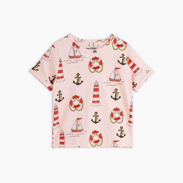 Upcycled T-shirt with an all over Lighthouse print, made from 100 % GOTS certified organic cotton. Designed with bindings at neck and sleeve ends.