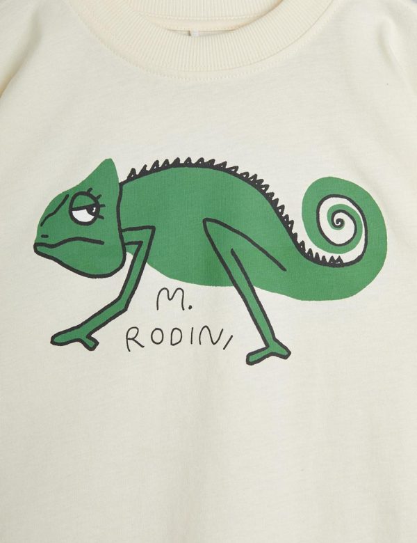 T-shirt with a Lizard print, made in 100 % GOTS certified organic cotton. Cut for a loose fit and designed with a ribbed collar.Features