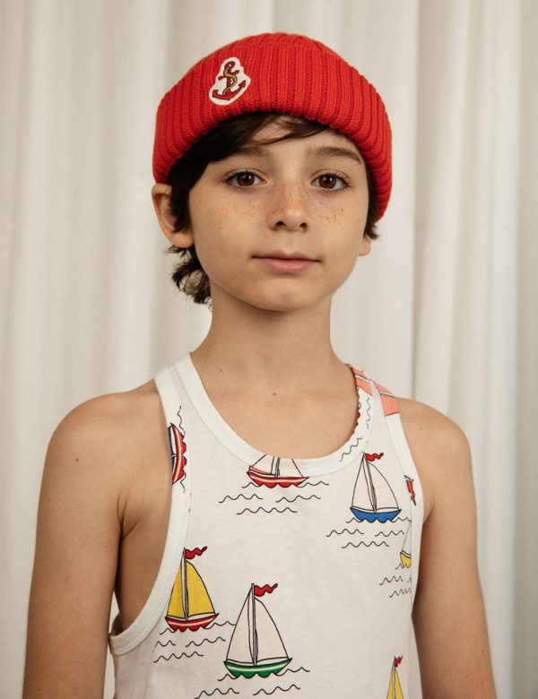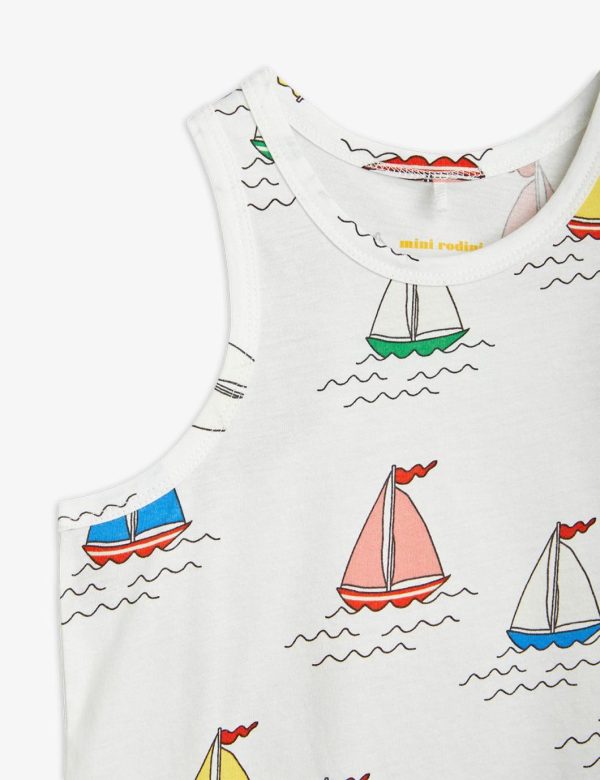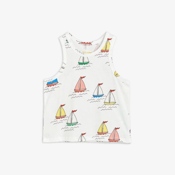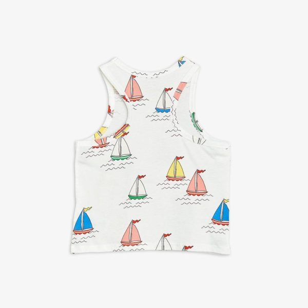 White tank top with an all over Sailing Boats print, made from 100 % GOTS certified organic cotton.