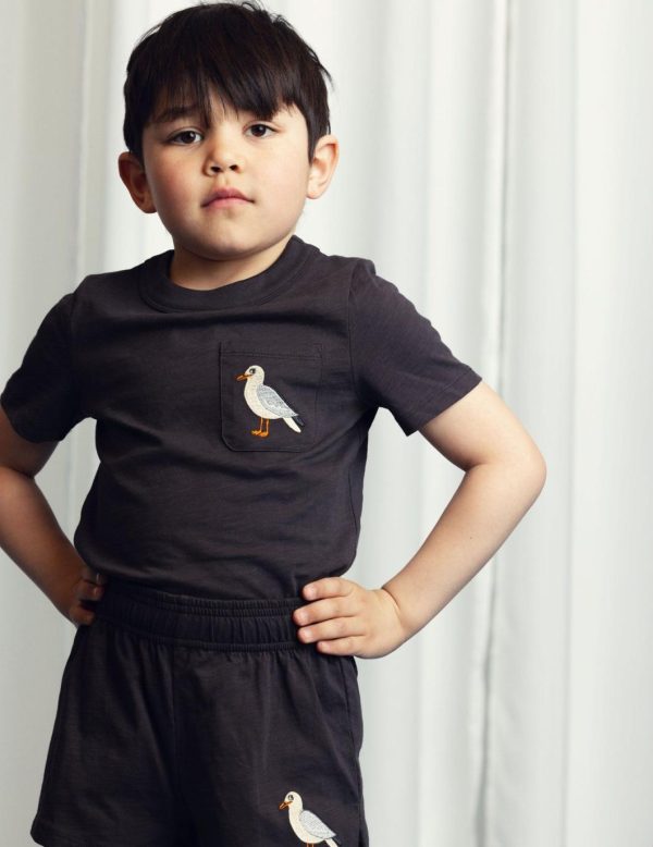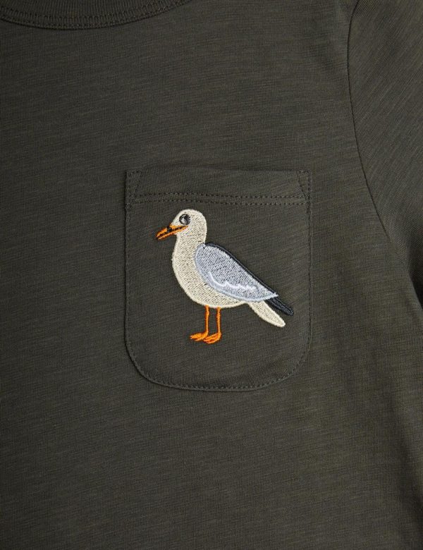 T-shirt made in 100 % GOTS-certified organic cotton. Designed with a chest pocket decorated with a seagull patch.Features
