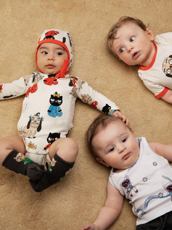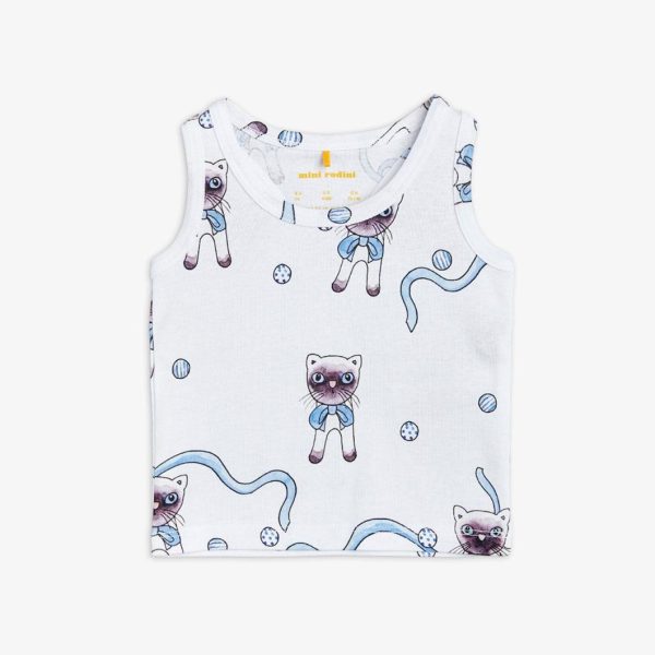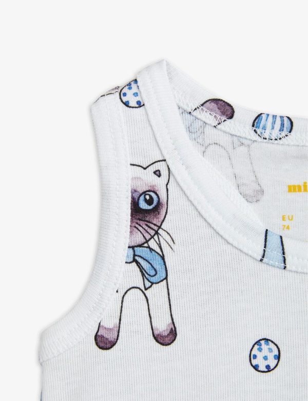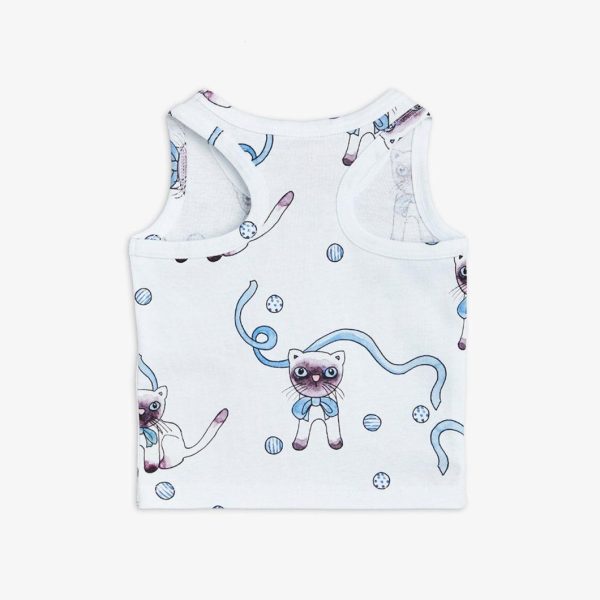 White baby tank top with an all over Siamese Cats print, made from 100 % GOTS certified organic cotton.