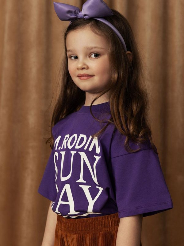 T-shirt with a Sunday print, made in 100 % GOTS certified organic cotton. Cut for a loose fit and designed with a ribbed collar. The model is 123 cm tall and is wearing a size 116/122.